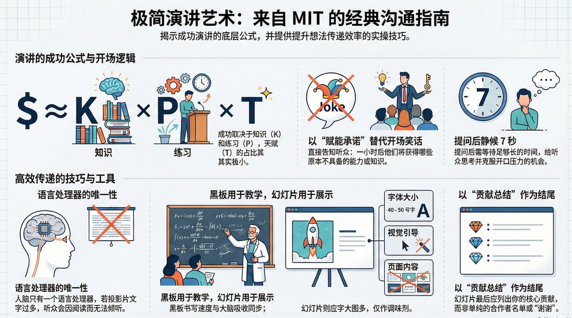 Patrick Winston教授坚信,决定你成功与否的顺序是:口才、写作能力,最后才是想法的质量。他提出了一个著名的成功公式:成功 = 知识(K) + 练习(P) + 天赋(t),并强调天赋(t)的比重微乎其微。在本期节目中,他分享了自己滑雪技术远超奥运体操冠军的亲身经历,生动地证明了只要掌握正确的方法和知识,任何人都能成为卓越的沟通者,让自己的想法真正被世界听见。