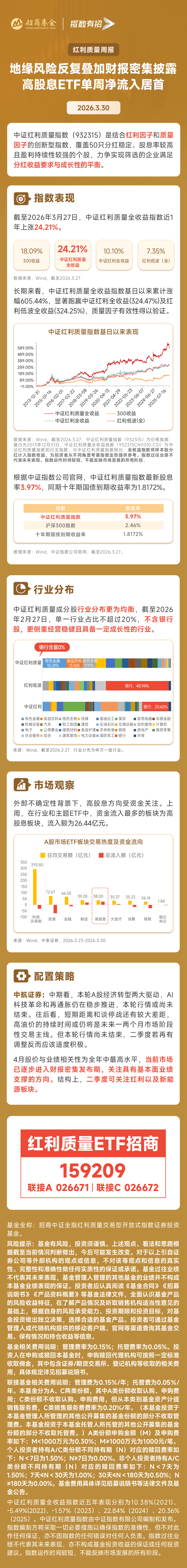 各位听众朋友们大家好,欢迎收听招商基金《指数有招》系列节目。本周我们聚焦中证红利质量指数(932315),深入解读在地缘风险反复叠加财报密集披露的背景下,高股息ETF为何成为资金避风港,以及该指数如何通过“红利+质量”双因子实现收益与成长的平衡。