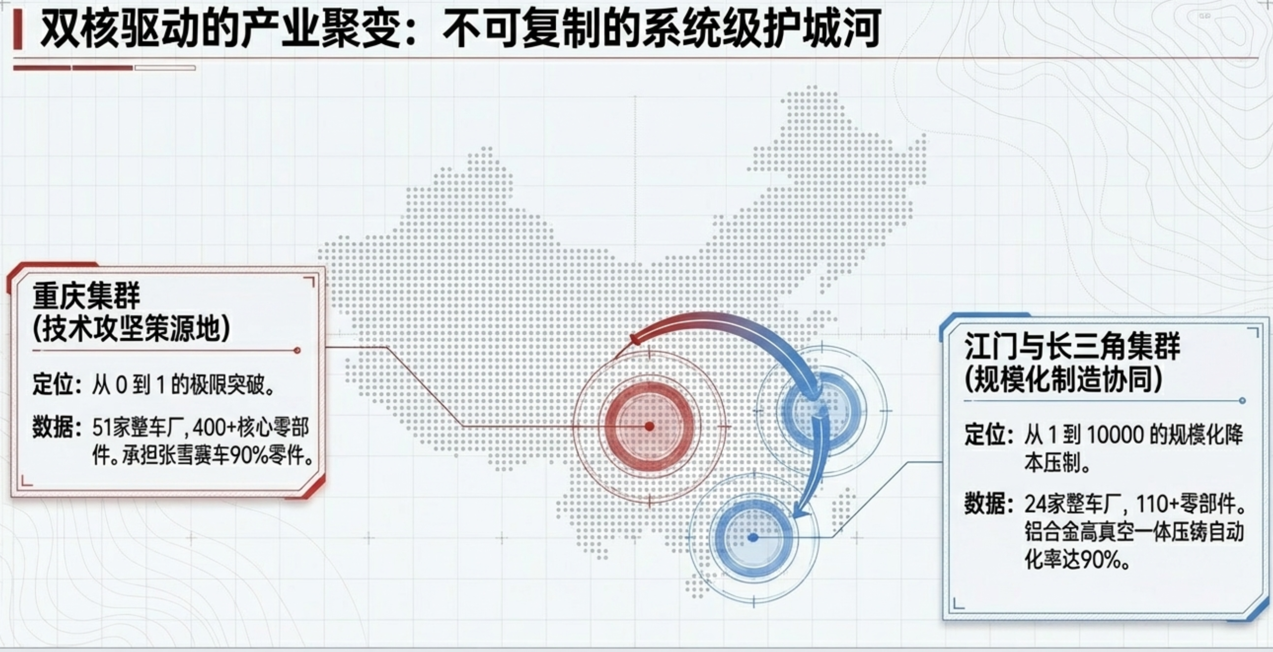 二、 江门与沿海集群:规模化降本与高端制造品控如果说重庆主攻前沿研发,那么以广东江门为代表的珠三角集群以及长三角集群,则解决了“从1到10000”的规模化降本与高端品控问题。