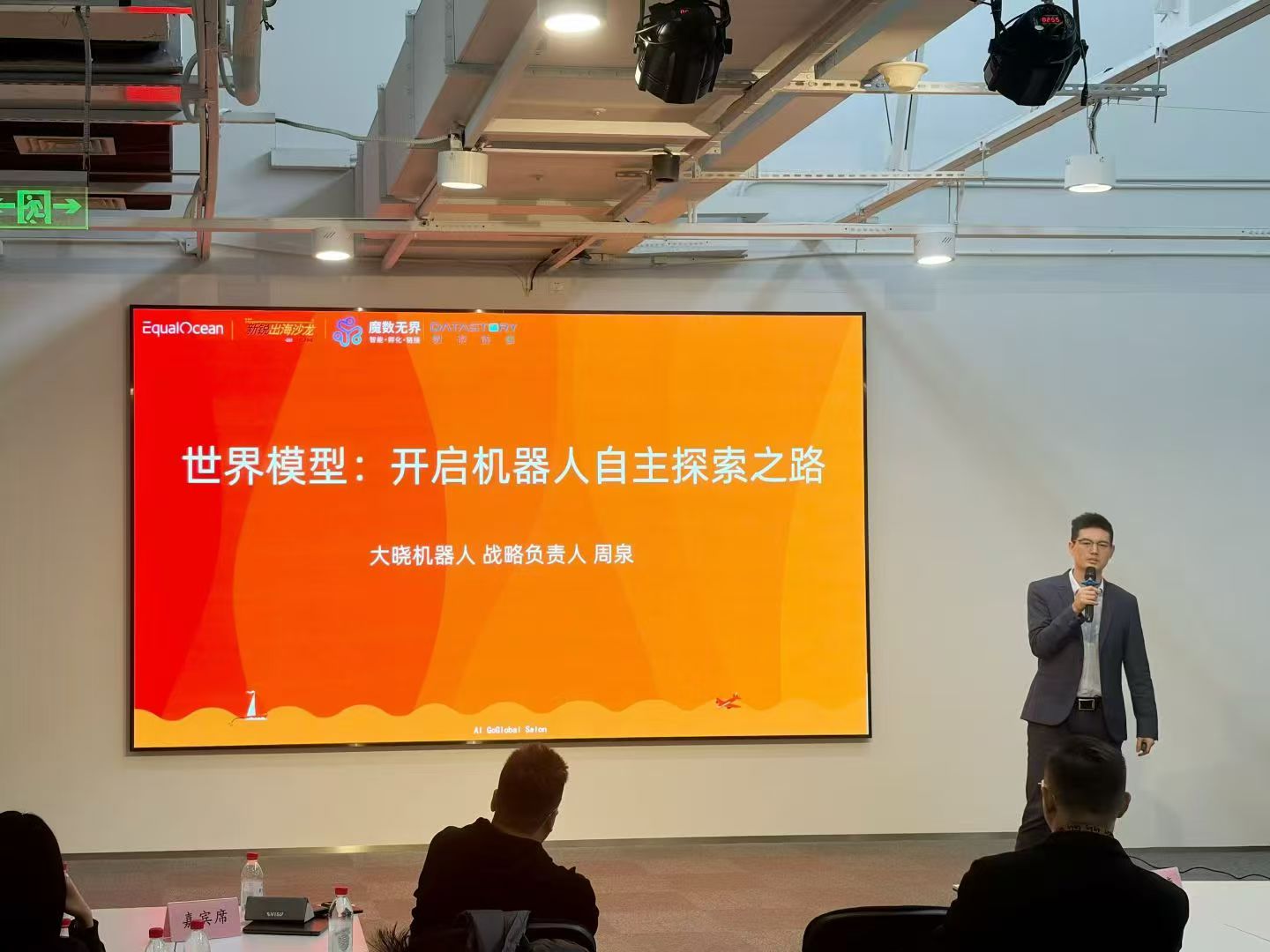 活动现场,大晓机器人战略负责人周泉发表了主题为《世界模型:开启机器人自主探索之路》演讲。