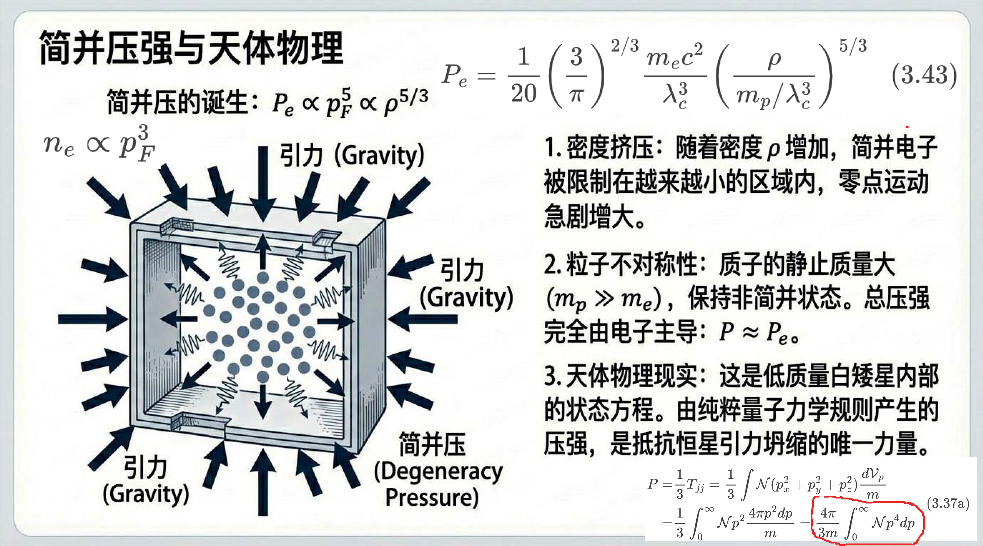 从微观粒子的动量分布到宏观世界的状态方程,物理学如何架起这座桥梁?本课将带你深入动量空间积分的内核,从基本的数密度推导,一步步走向白矮星内部那惊人的简并压。在这里,你会发现泡利不相容原理不仅是量子力学的基石,更是支撑起致密星体的终极力量。