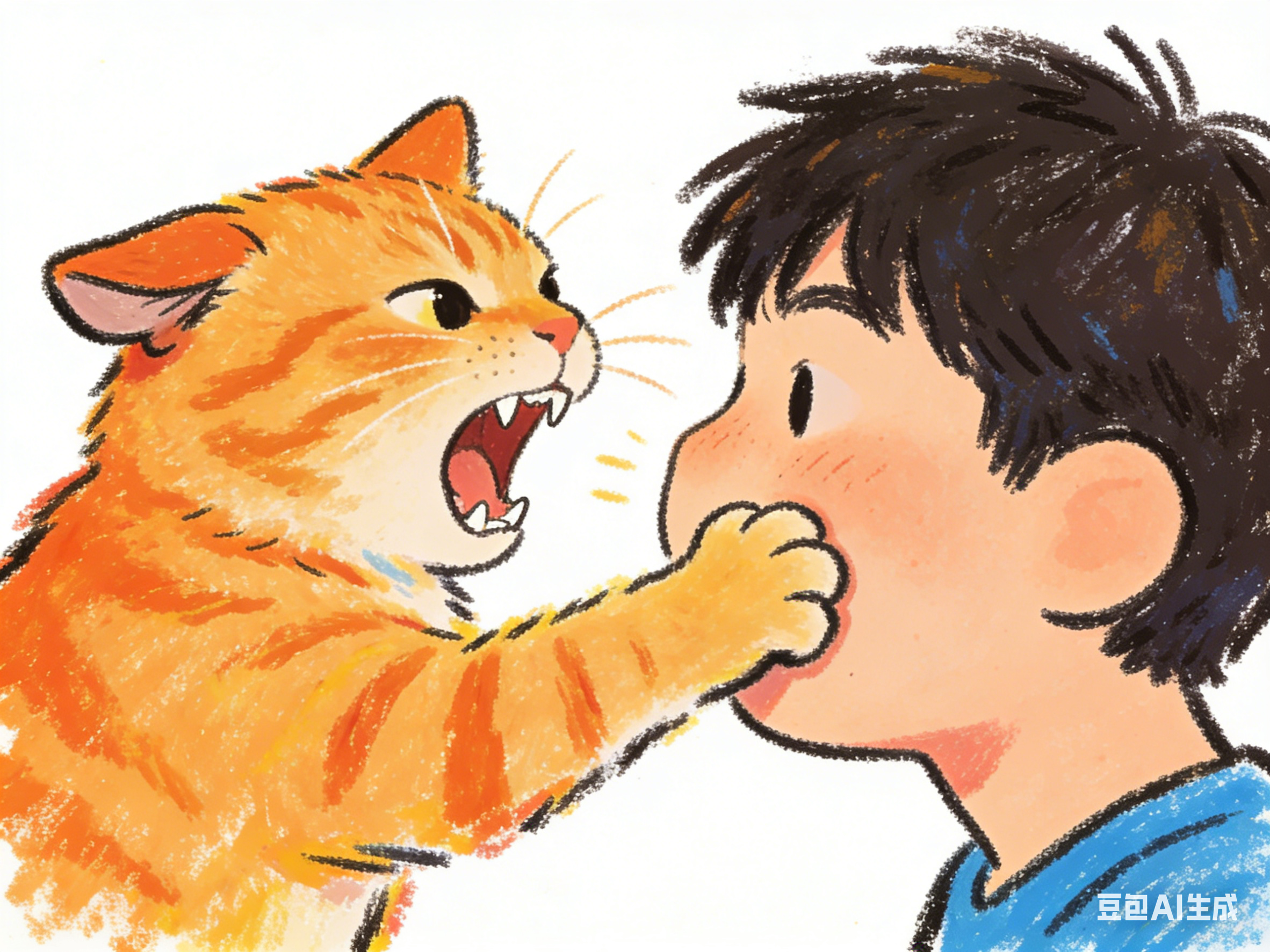它龇着牙,耳朵往后压,整张脸皱成一团,喉咙里发出低沉的呜呜声。我还没来得及反应,它一巴掌拍了过来。