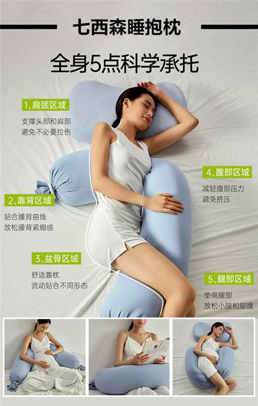 侧睡抱着、仰睡垫膝盖、沙发葛优躺垫腰、坐着靠背……一个枕头适配很多场景。对孕妈妈来说还可以承托腹部,缓解侧睡时肚子的压迫感。
