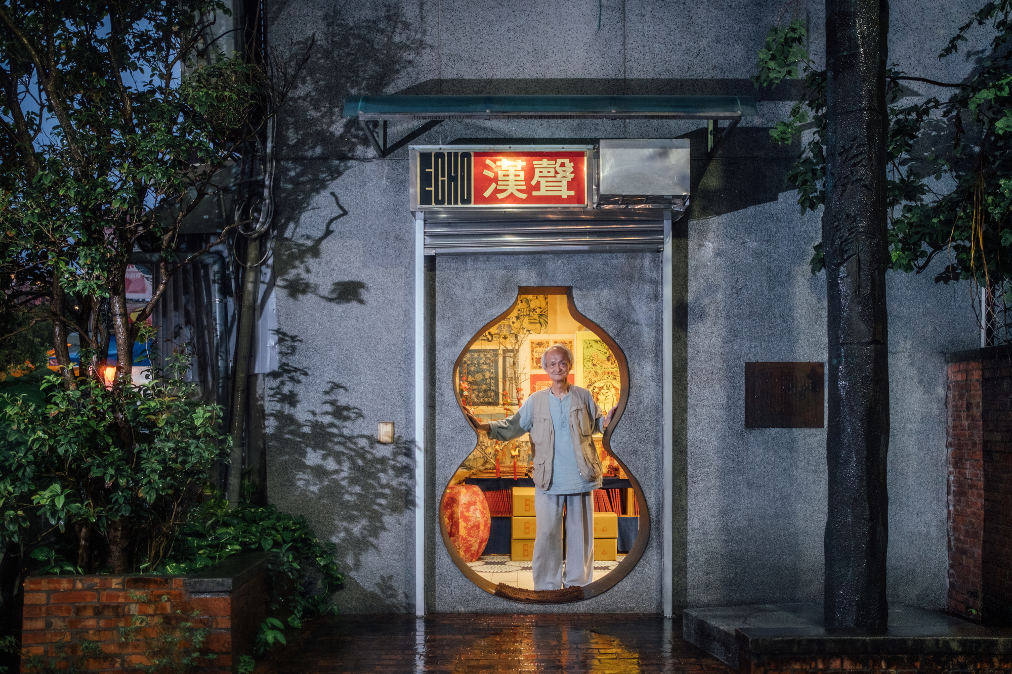 ⬇️ 汉声四君子之一,黄永松先生,于大雨中站立在汉声巷门前。(图/余志伟)