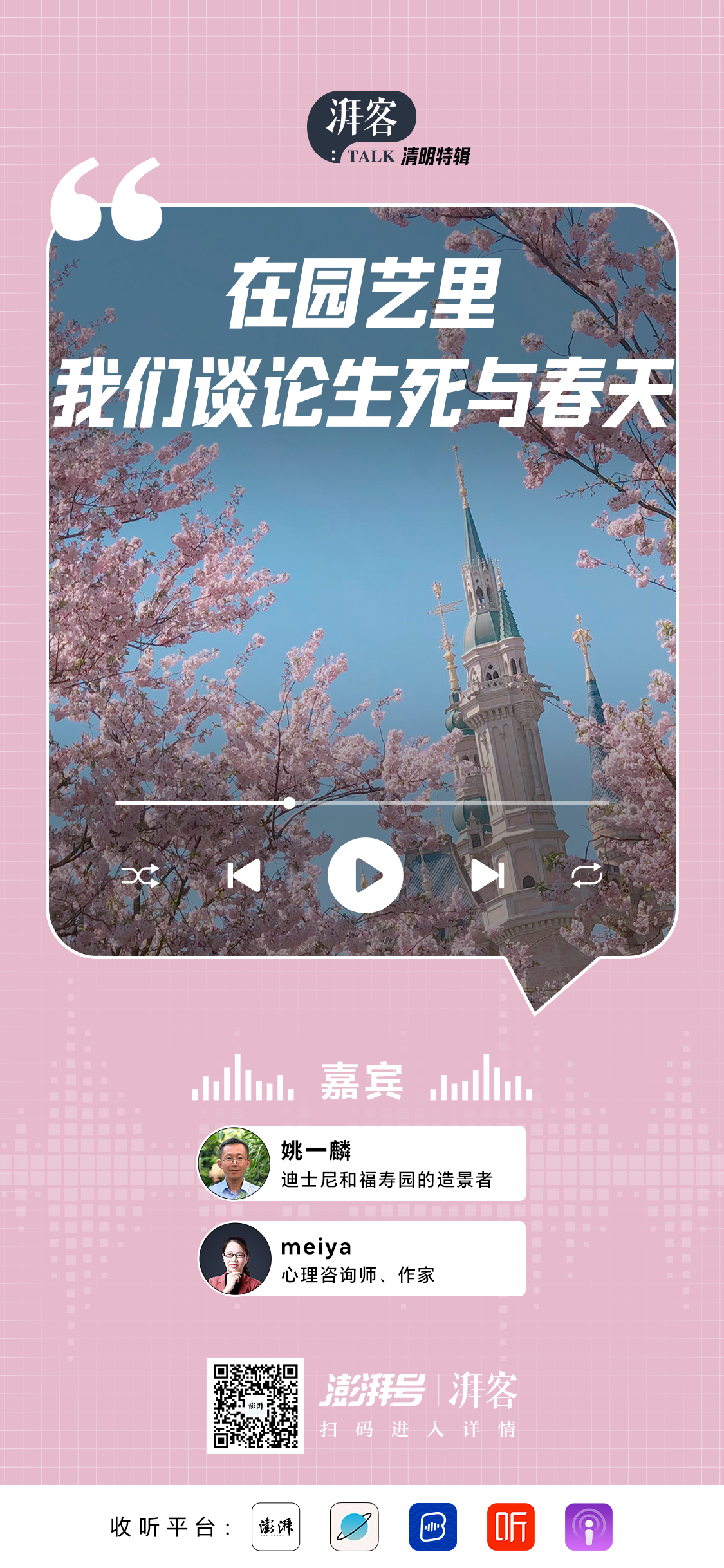 本期《湃客Talk》,我们邀请两位特殊的“园丁”:一位曾为“全世界最欢乐的地方”创造过无声的植物叙事,如今转而为“生命的终点站”设计着风景;另一位则在城市一隅,用7年时间,从一片荒芜播种出一方花园,也耕耘出内心的丰盈与安宁。