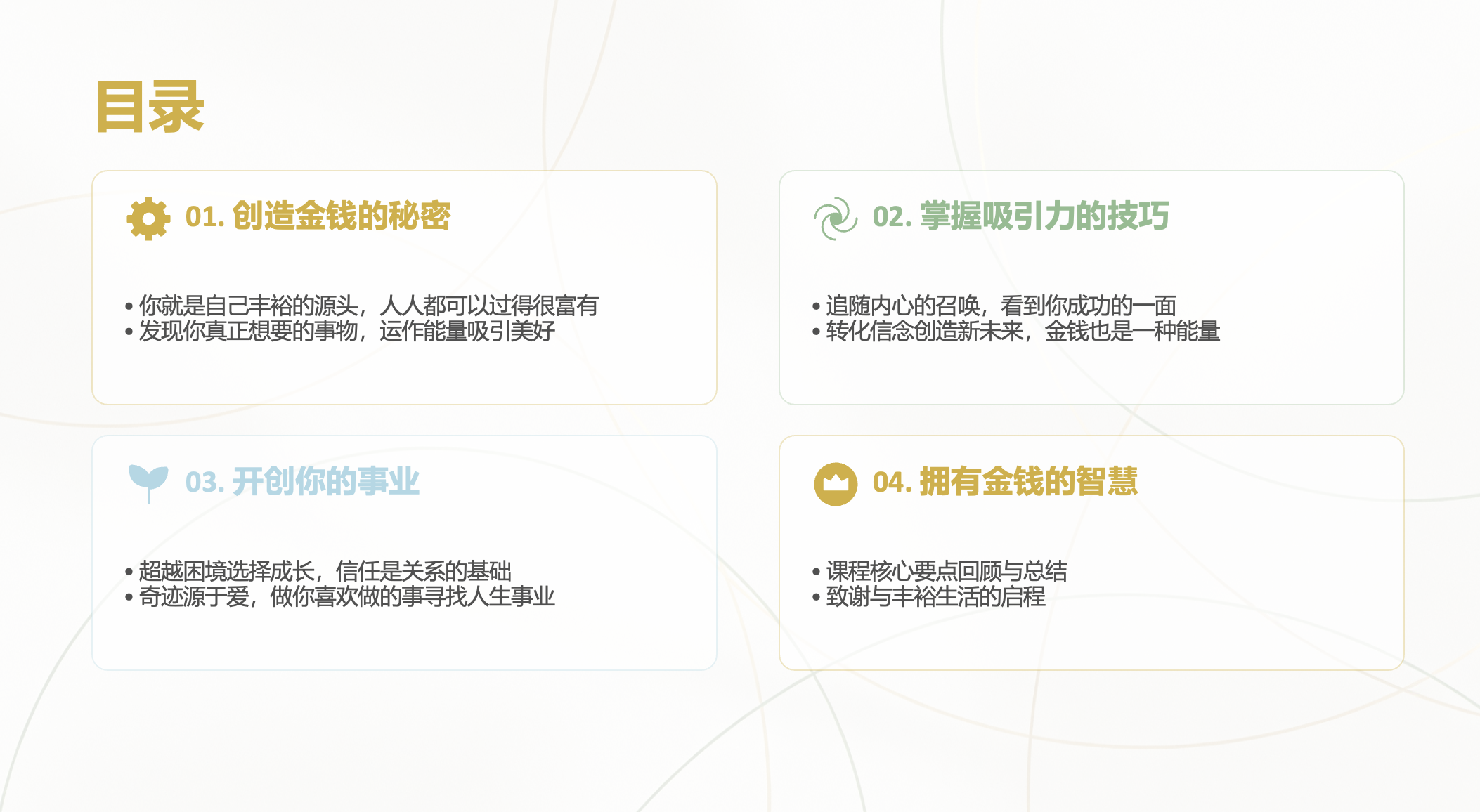 大家好,今天我将和大家一起探讨一本非常特别的书——《创造金钱·通往丰裕之路》。这本书不仅仅是关于如何赚钱,更是关于如何通过运用灵性法则和能量技巧,从内在创造出全方位的丰裕生活。希望通过今天的分享,能为大家开启一扇通往丰裕与喜悦的大门。