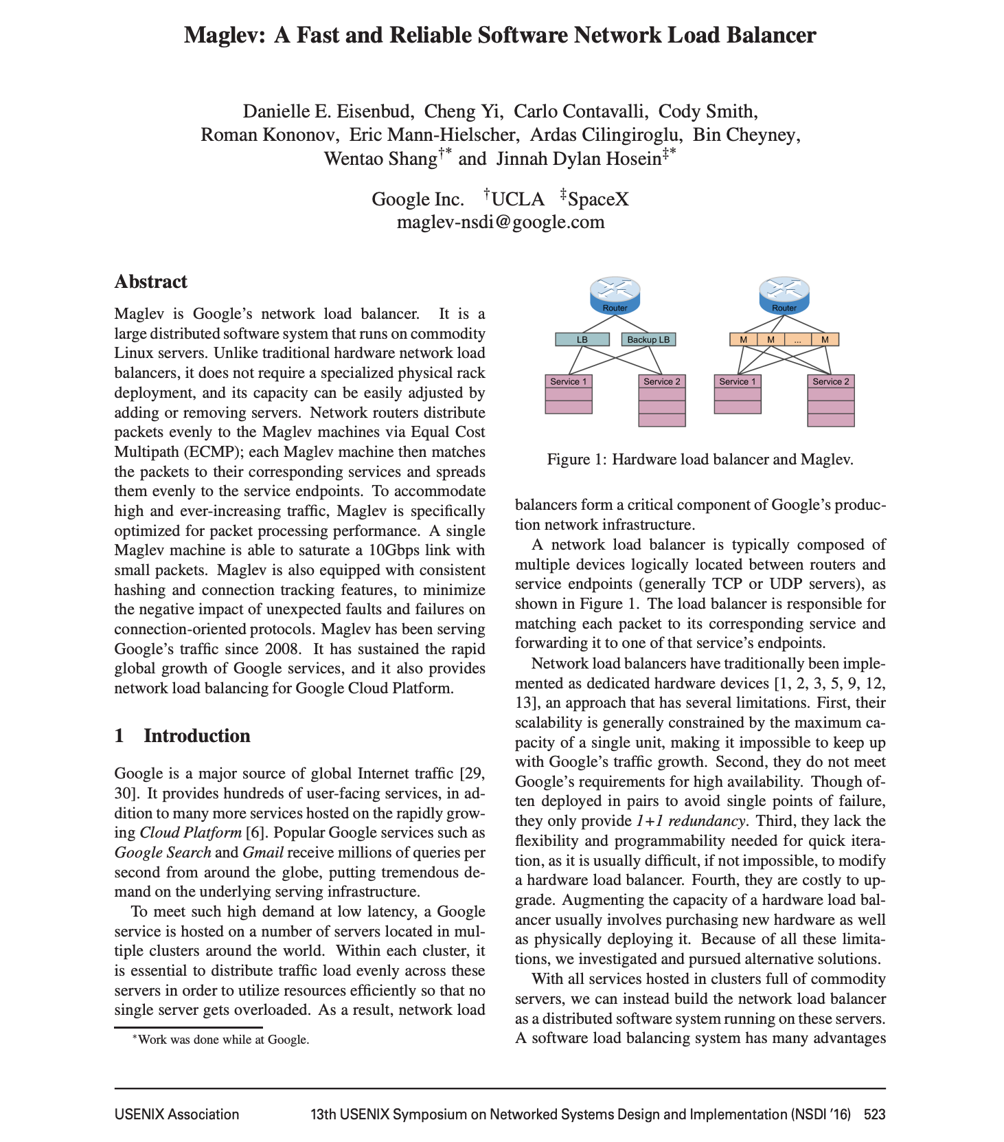 Maglev 是一项早在 2008 年就已成熟并投入使用的技术,但 Google 直到 2016 年 才通过 NSDI 会议正式发表论文,向公众披露其设计细节和多年来的运维经验。这种“先在大规模生产中验证,多年后再发表论文”的做法在大型科技公司中非常常见。