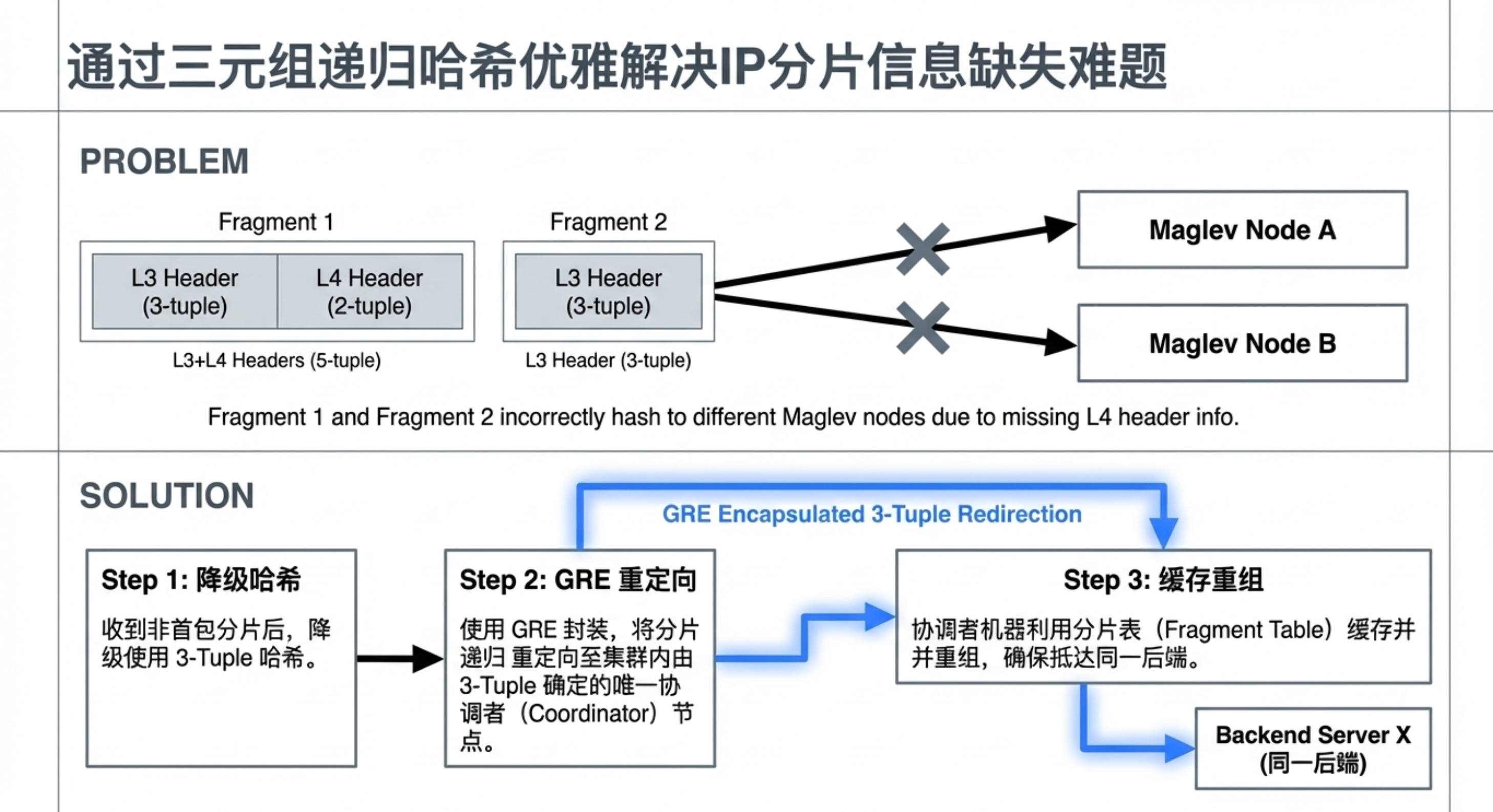 - IP 分片处理:针对分片包,通过二级重定向机制确保同一报文的所有分片由同一台转发器处理。