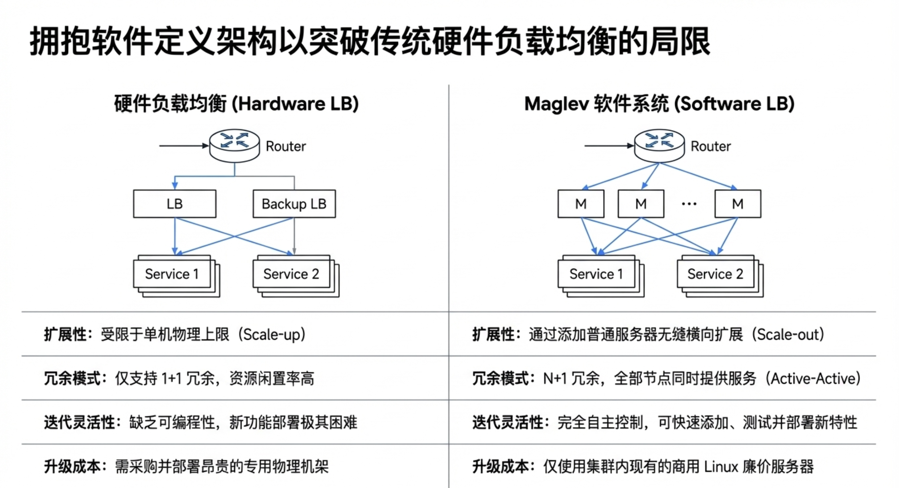 在 Maglev 之前,Google 曾依赖传统的硬件负载均衡器,但很快撞上了天花板: