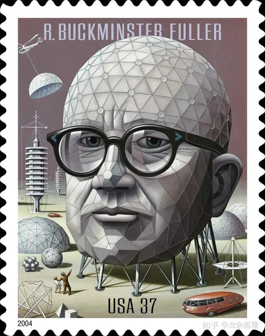 2004年发行的富勒纪念邮票,画面上是他的各项发明和构想