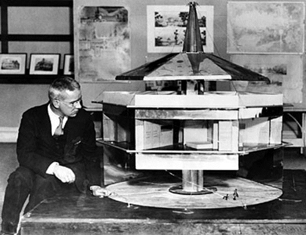 最终,富勒用现实回答了自己的问题,他发明了轻质的“戴美克森”住宅、提出了“张拉整体”结构理论、并设计了标志性的“网格球顶”(短程线穹顶),这些设计都体现了他对效率、资源与结构的深刻思考。