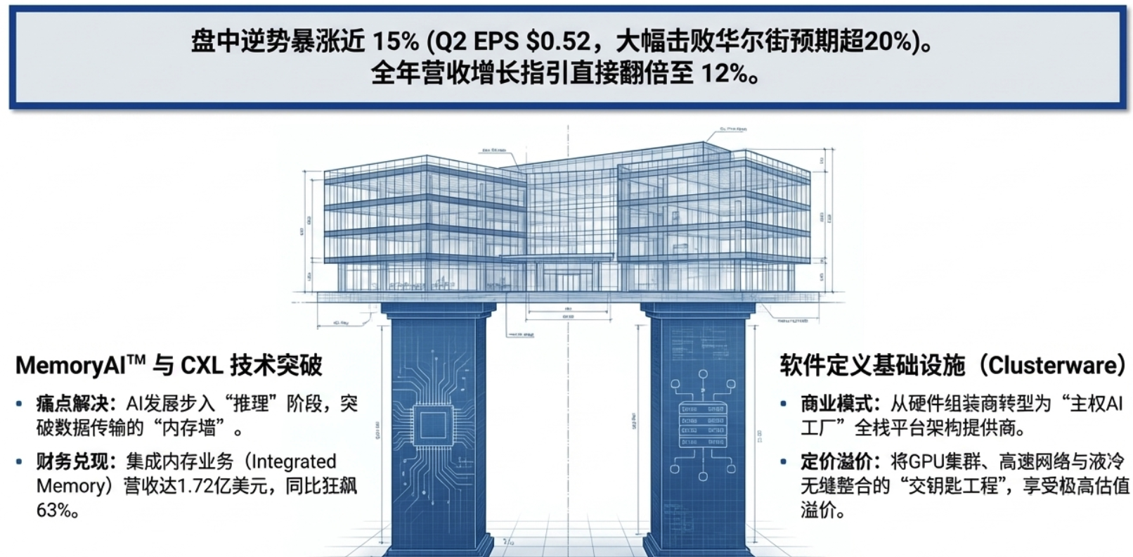 系统集成商的估值重估在科技股普跌中,Penguin Solutions (PENG) 逆势暴涨15%,为AI硬件下半场定下了基调。其Q2财报中集成内存业务同比增长63%的表现,证明了解决“内存墙”瓶颈的商业价值。Penguin的核心护城河在于其“MemoryAI™”技术和自研的Clusterware软件平台。它不再是简单的硬件组装商,而是能够为追求自主算力的**国家主权AI(Sovereign AI)以及新兴的Neocloud(新贵云服务商)**提供全栈“交钥匙”方案的集成架构师。价值正在从单一组件向能解决系统级瓶颈(I/O、热管理、软件调度)的集成平台商倾斜。