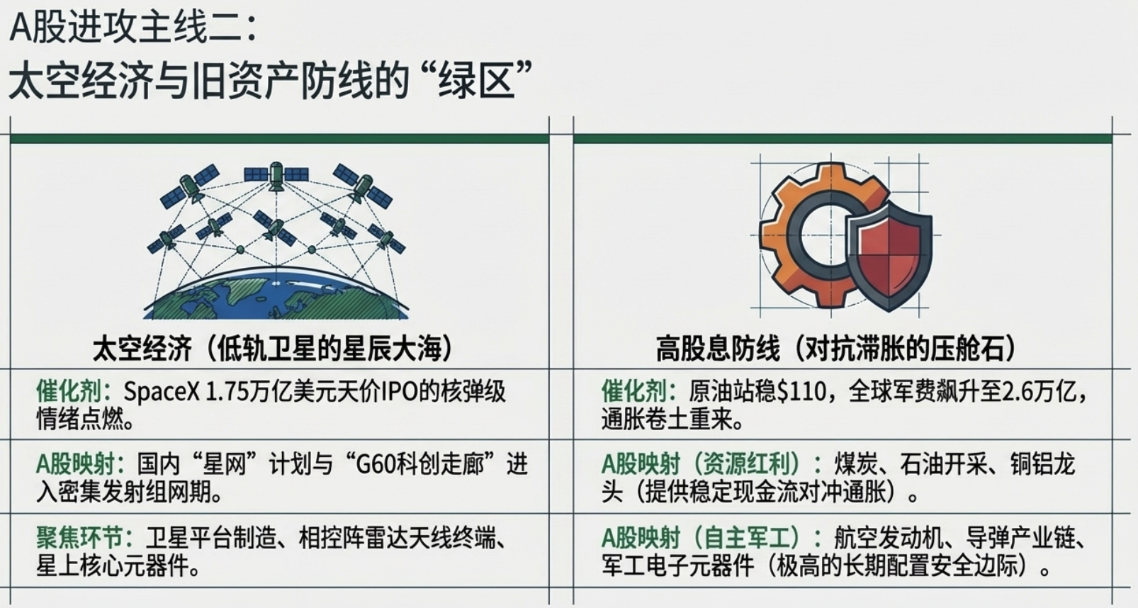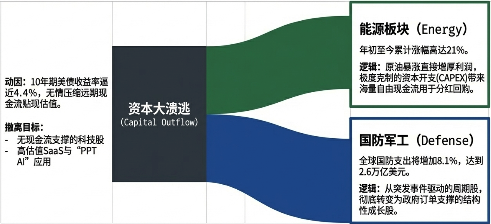 站在通胀重燃、地缘撕裂与科技跃进的三岔路口,全球资本的流向已清晰可见:战略防御(压舱石): 坚守高股息的能源(石油、煤炭)与资源红利资产,对冲“滞胀”风险。