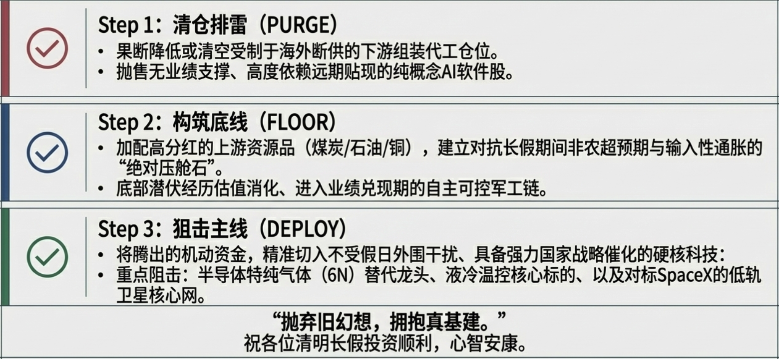 在物理极限与地缘锁喉的双重束缚下,唯有那些能解决底层瓶颈——无论是通过国产特气替代实现供应链安全,还是通过系统集成突破内存墙,亦或是利用轨道空间突破散热极限的“硬资产”,才具备穿越周期的确定性。明天收盘前,请自问:你的组合里,有多少资产是能够真正抵御“物理性停产”和“输入型通胀”的硬通货?