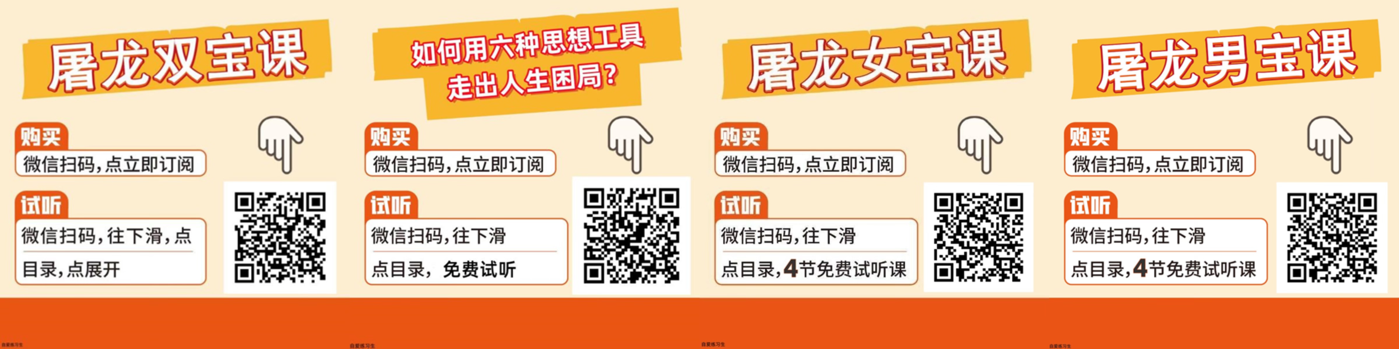 想要系统解锁大局观、少走 10 年弯路?屠龙老师的系列课程从脑科学和人生系统维度,帮你破解成长困境,不管是自我成长、科学养育,还是两性相处,都能找到适配方法: