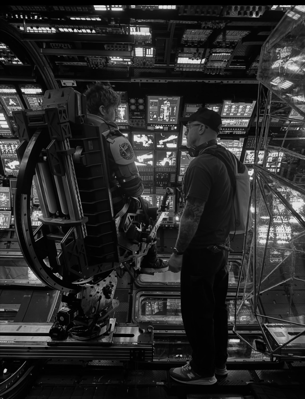 《2001 太空漫游》致敬:“万福玛利亚号” 旋转重力舱的画面、垂直镜像光晕,复刻了该片的经典旋转走廊设计。