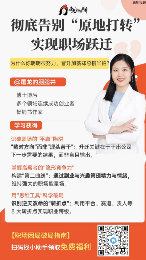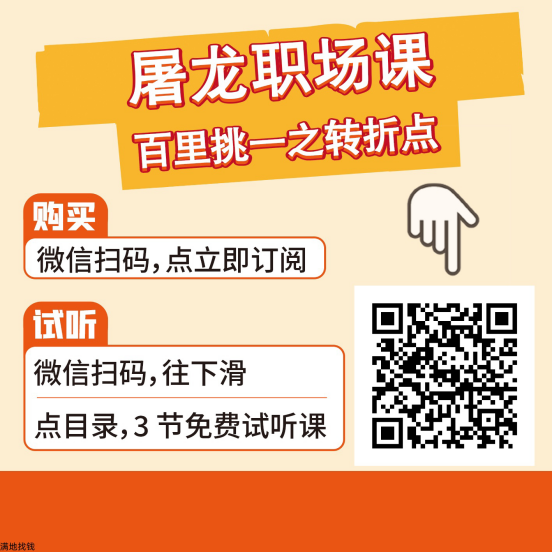 另外如果想要系统掌握职场 “屠龙术”,精准找到转折点、破解人生困局?现在就可以戳链接或扫码订阅屠龙老师的专属课程,让成长少走弯路哦!
