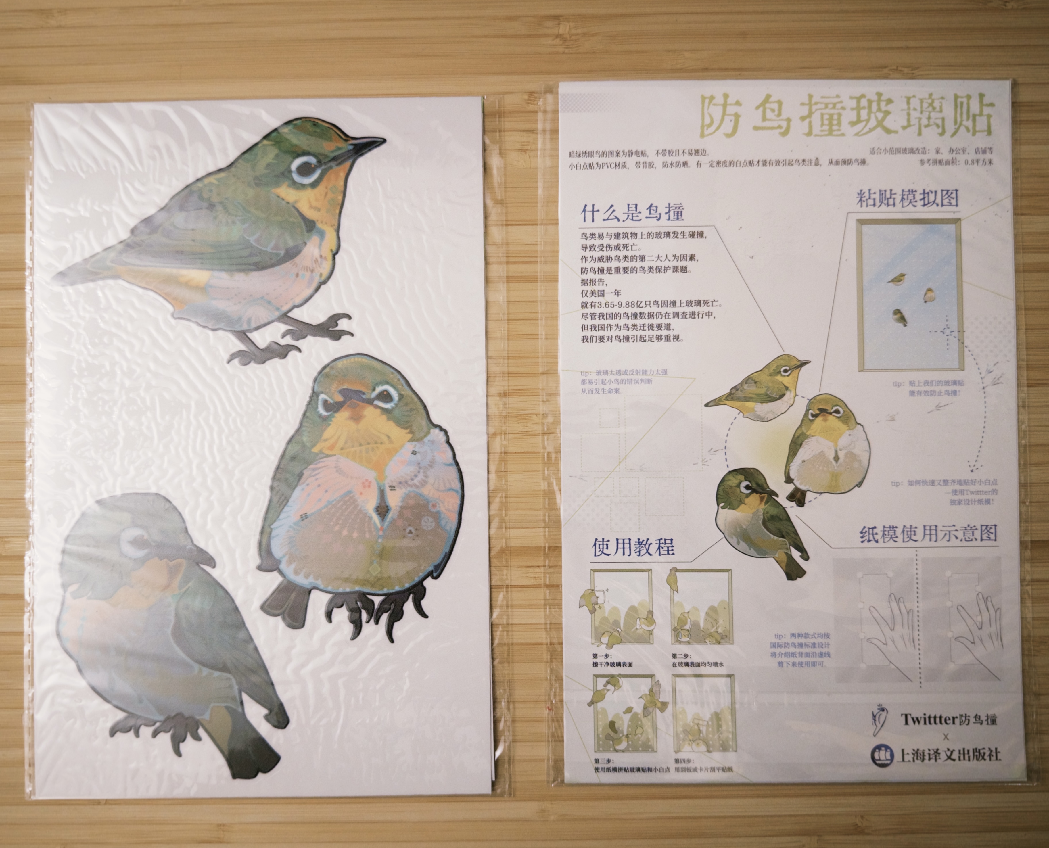欢迎大家在评论区留言,聊聊小鸟、春天和大自然,我们将选出三位听众,送出一套由上海译文出版社联合Twittter防鸟撞,为《观鸟大年》定制的【防鸟撞玻璃贴】。