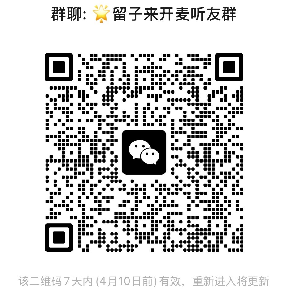 推荐您使用小宇宙app、苹果播客、喜马拉雅、网易云音乐等平台订阅收听《留子来开麦》📱 扫码加入听友群,一起畅聊节目背后的故事!