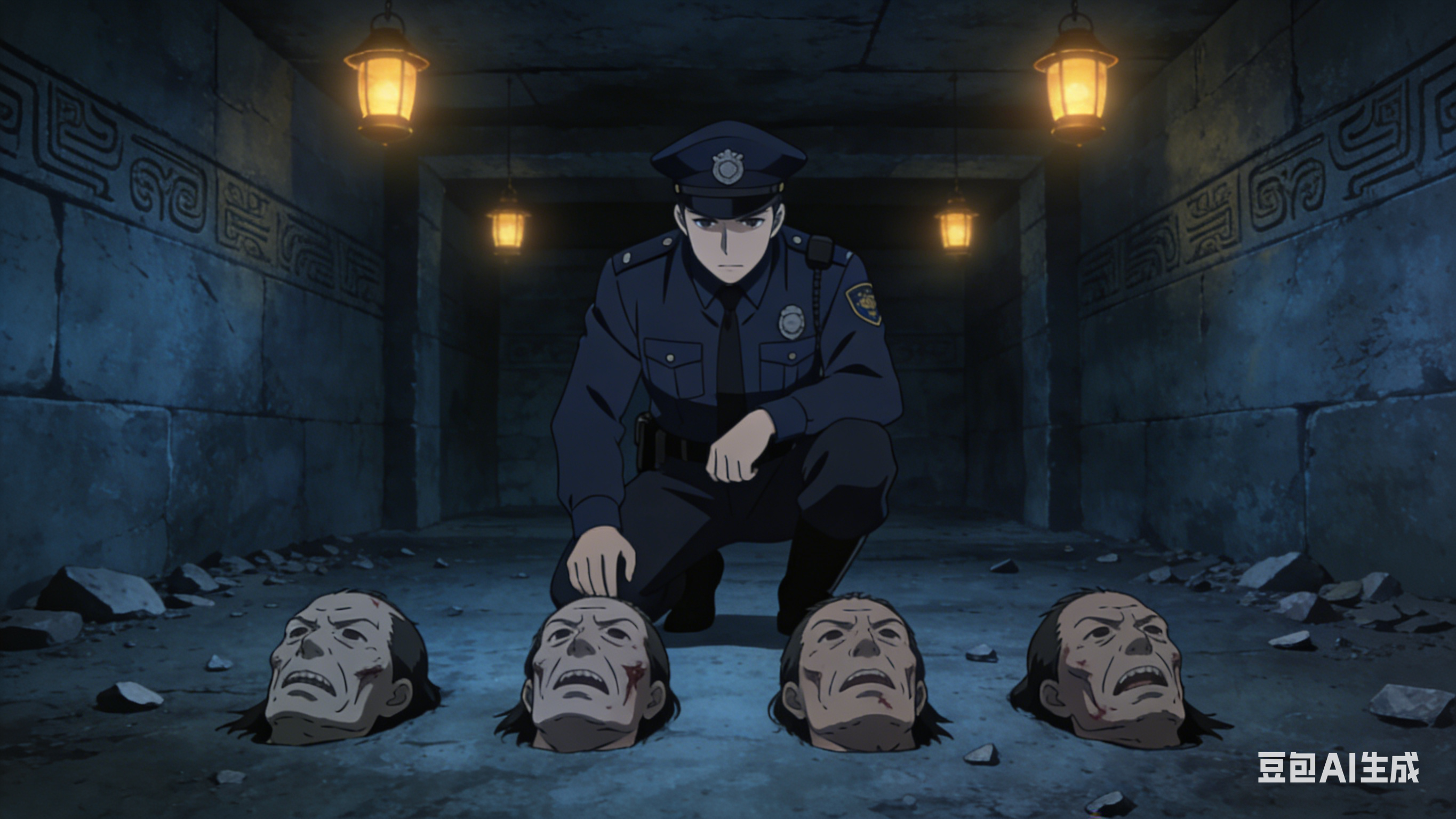 刘毅抄起顶门闩推门,出了屋就听见墙外有哒哒的马蹄声,刘毅想看看是谁大半夜在街上骑马,就打开了门。往门外一看,差点吓尿了裤子。就见门外有一个大将军,手里拎着4颗血淋淋的人头,他的头盔里面是空的,并没有头。刘毅吓得腿一软,一屁股坐到了地上。怎么了?你这是杀人了,杀人了。媳妇听见声音不对,也出来看刘毅,吓得结结巴巴地喊着,杀人了,杀人了。