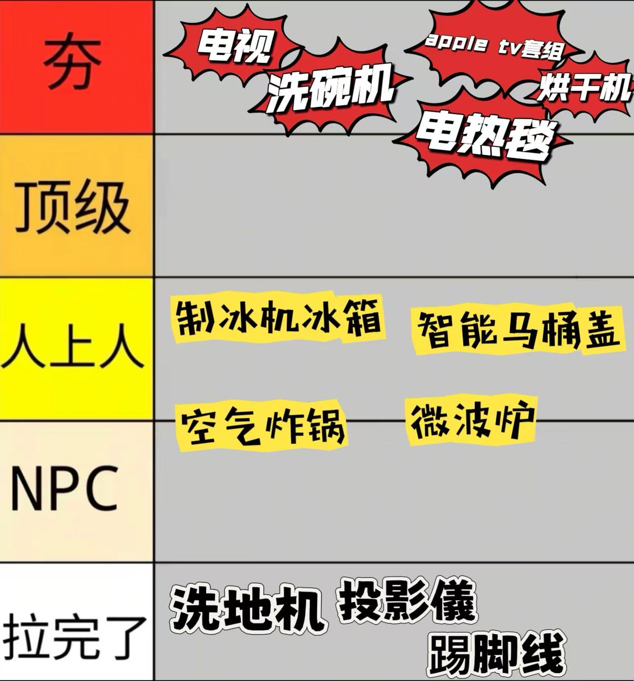 在清明小长假来临前的夜晚,我们突发奇想,有了这一期节目的企划我们自己独居也有好几年的时间了,那么在我们这么多年的独居生活、包括合住生活中,到底有哪些家用电器(含不插电的纯家具)想要推荐给你们或者大力吐槽呢?网上爆火的「从夯到拉」家电分级图拆解来了!从闭眼封神的刚需好物,到中规中矩凑活用,再到纯智商税、谁买谁亏的鸡肋电器,一次性扒透日常家居踩坑真相。不吹不黑,接地气唠明白,装修囤家电、换新刚需必听!ps有谁用过电热毛巾架求分享使用感受