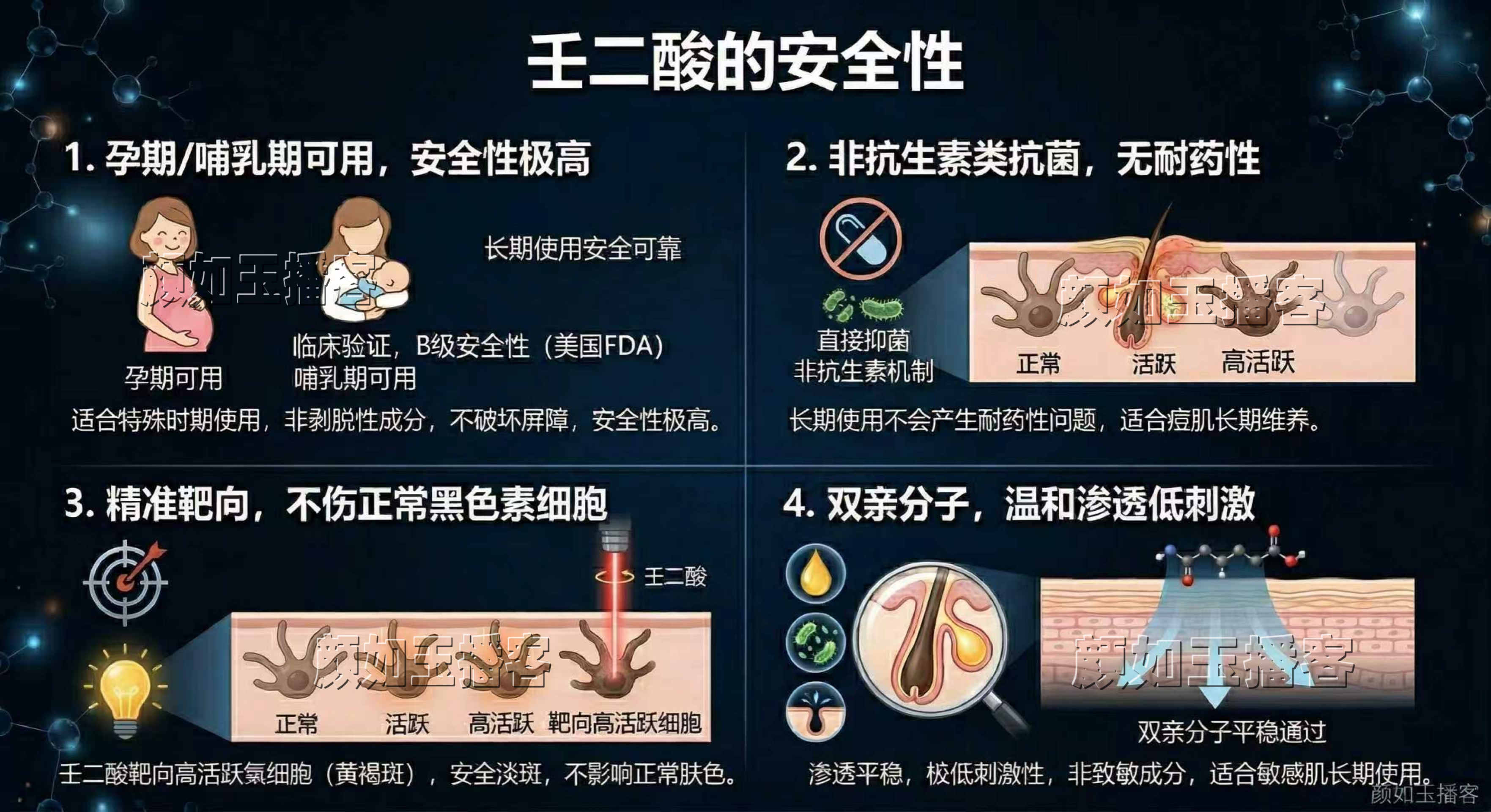 这张图片阐释了壬二酸在安全性方面的四大科学优势: