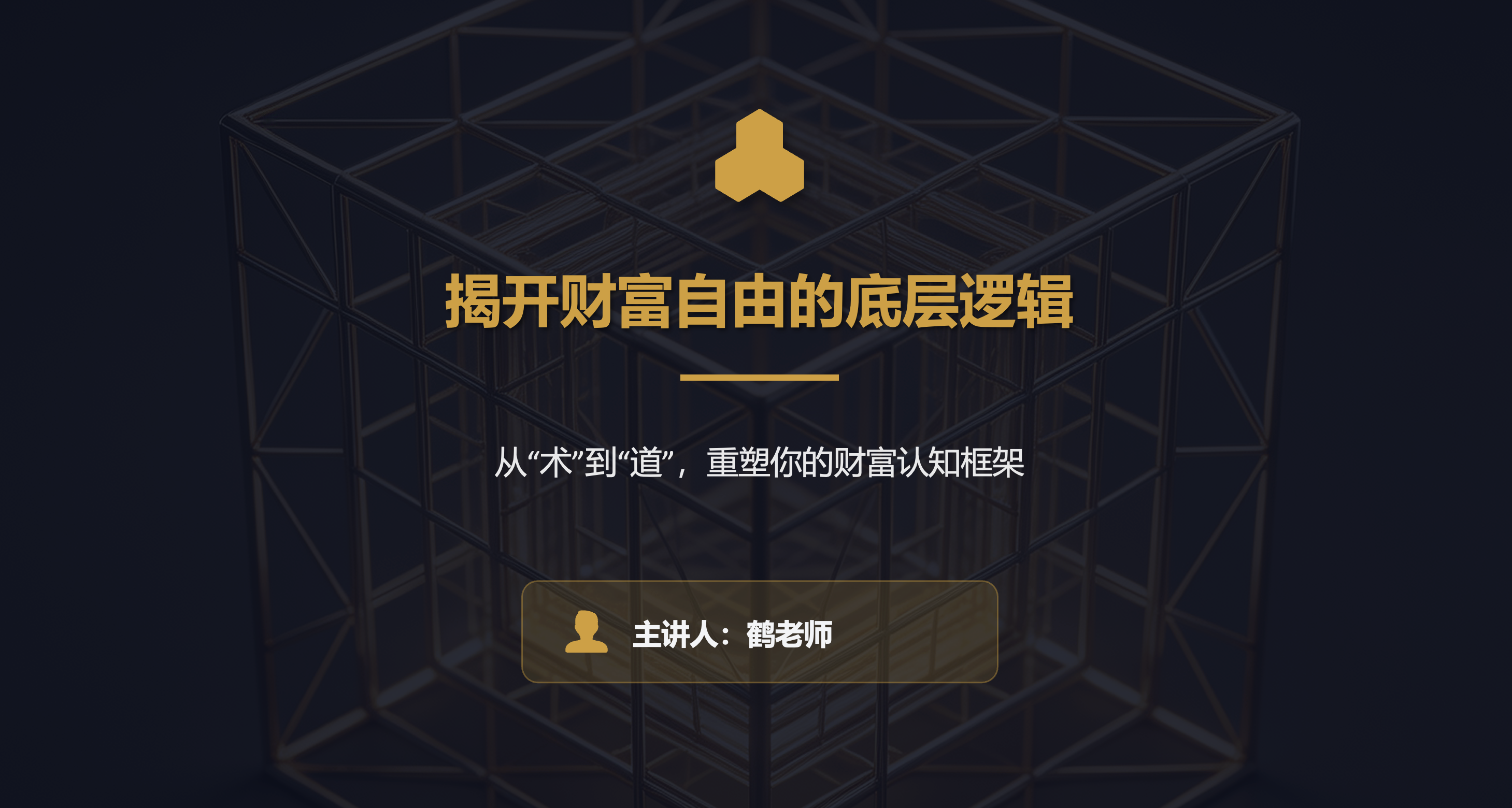 大家好,欢迎来到今天的分享。我们常常问自己,为什么我们读了很多书,懂了很多道理,却依然过不好这一生?为什么我们勤奋工作,加班熬夜,却依然无法实现财富自由?今天,我将和大家一起,从《鹤老师说经济》这本书出发,揭开财富自由的底层逻辑,从零散的“术”,走向构建人生的“道”,重塑我们的财富认知框架。
