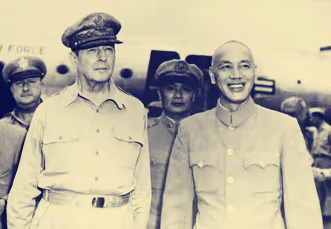 🔺 麦克阿瑟与蒋介石在朝鲜战争期间会面