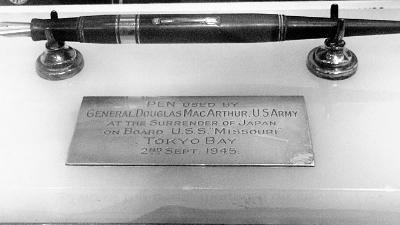🔺 麦克阿瑟签字(上图),曾使用的“结束二战的钢笔”(下图)