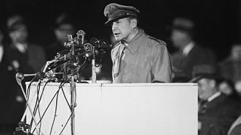 🔺 麦克阿瑟于1951年在芝加哥的演讲,说出了“老兵不死,只是逐渐凋零”