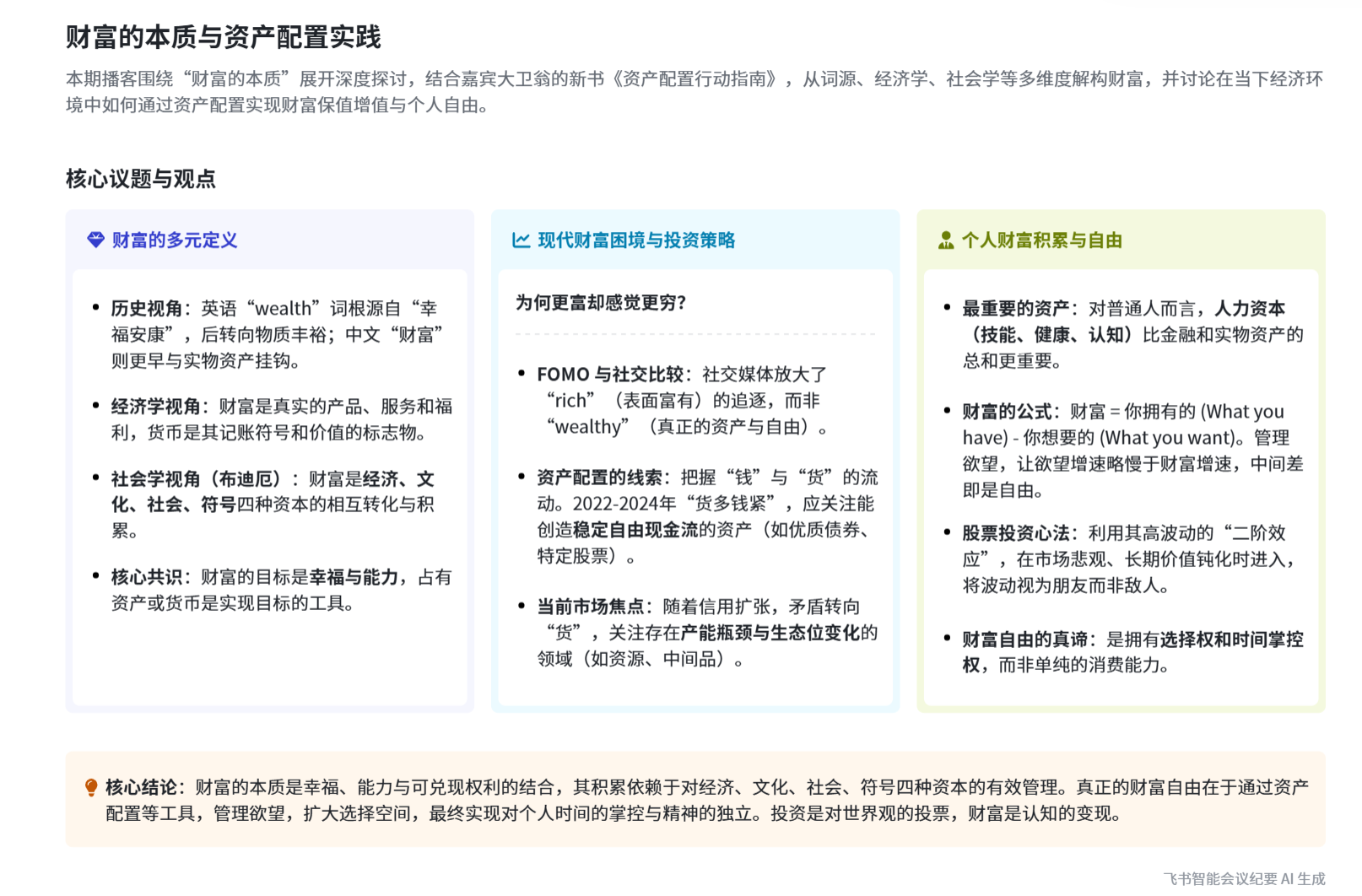 本期播客,我们与《起朱楼宴宾客》主播大卫翁,从历史、文化、经济、社会学多个维度,拆解财富的本质,探寻属于普通人的财富认知与积累之道。