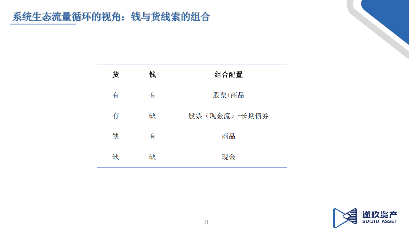 抓住主要矛盾:资产配置应抓住当下主要矛盾,因为当下矛盾是系统运行动力来源,决定未来走向。不预测事件发生时点,但决策面向未来,需找到价值流动的主要线索。