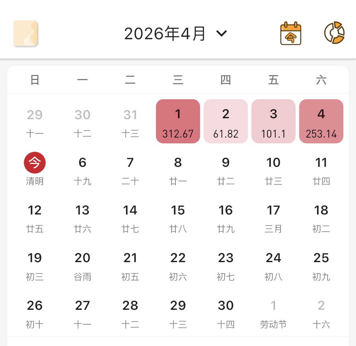 2026.4.5 周日 14~28°C ☀️ 晴00:05 果酒助眠感受(有用但不推荐)02:57 和妈妈相处的一天:起床吃饭+吃西瓜+种菜09:51 身体发出警告,眼前一黑又一黑11:20 星露谷游戏进度✅记账打卡(无)