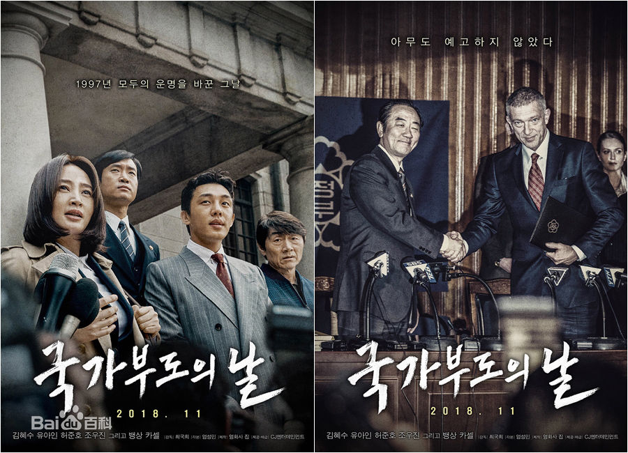 - 《国家破产之日》(Default / 국가부도의 날),崔国熙导演,金惠秀、刘亚仁主演,2018年上映。以1997年亚洲金融危机中韩国向IMF求援为背景。
