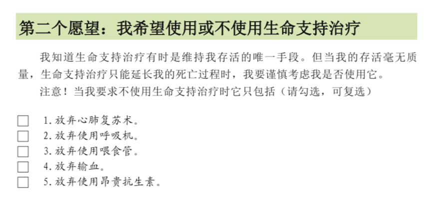 👇第二个愿望:我希望使用或不使用生命支持治疗