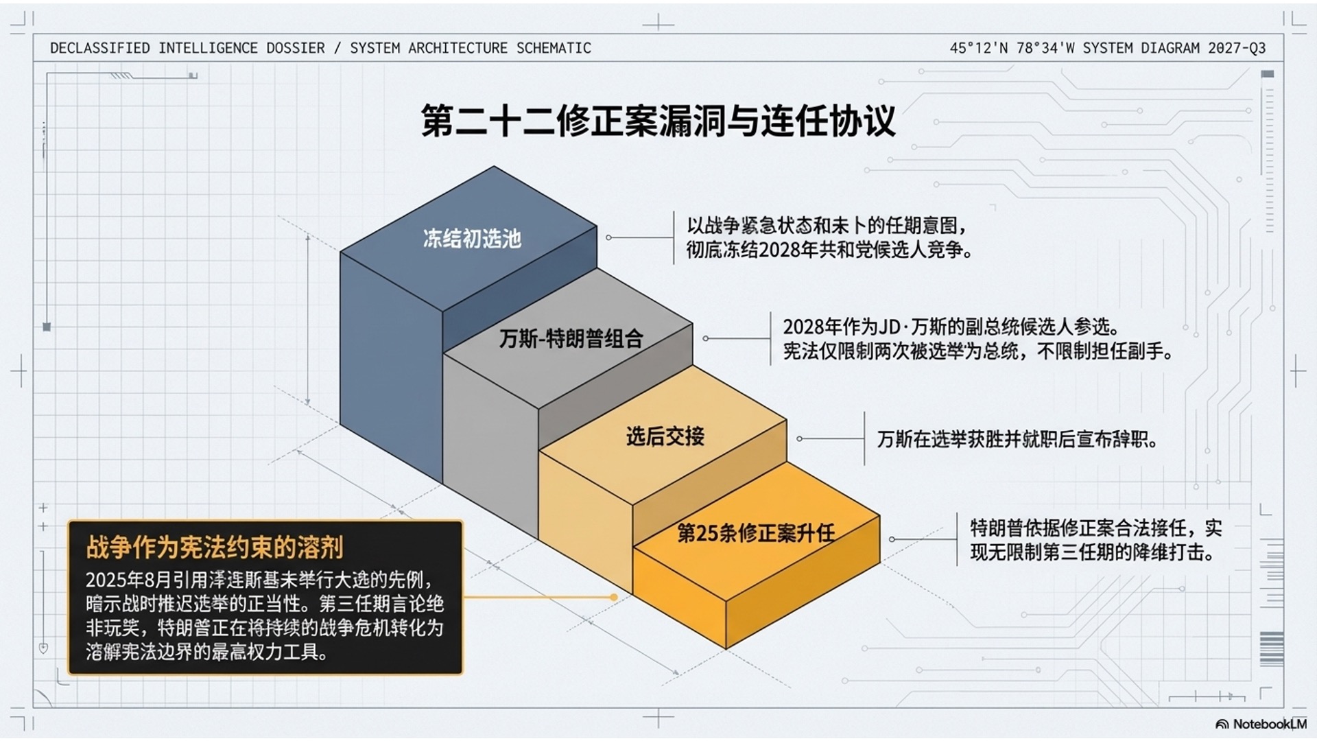 47:42 宪法压力测试:揭露特朗普试图利用战时状态或第22修正案漏洞(如作为副总统参选)谋求“第三任期”的政治野心。