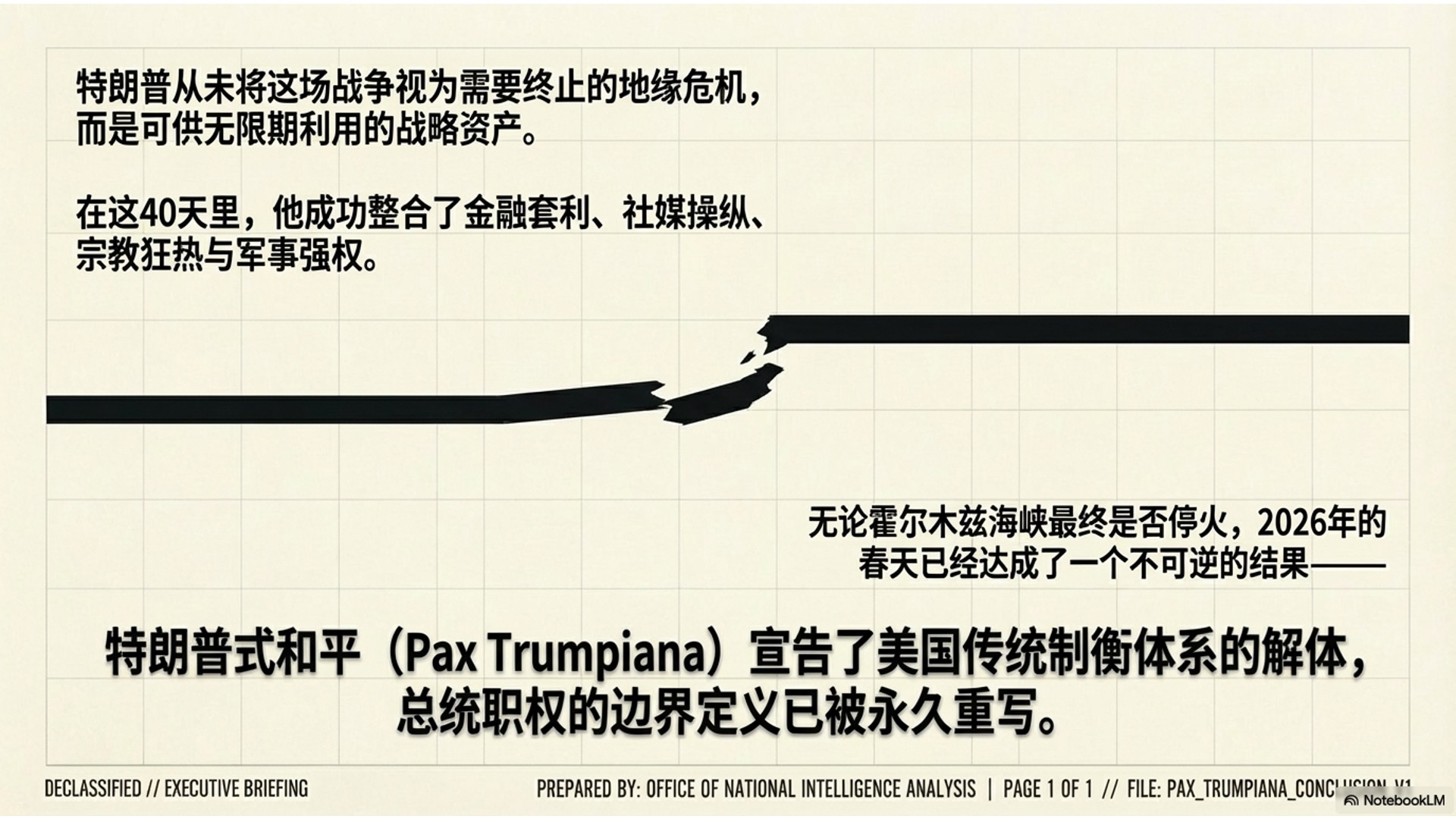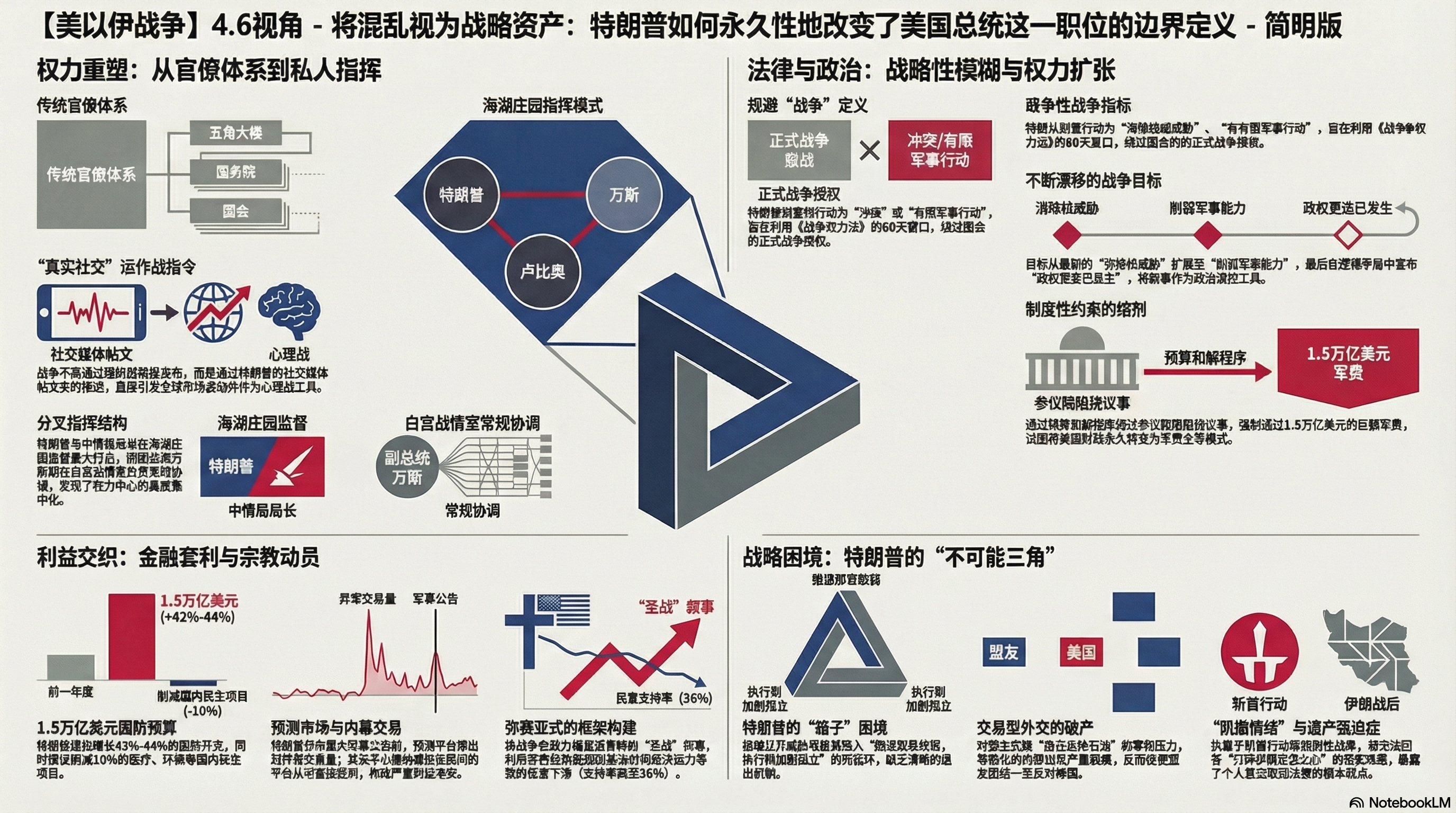 本期节目深度解析了2026年美以伊战争(“史诗狂怒行动”)期间,特朗普如何将“混乱”武器化并彻底重塑美国总统的权力边界。