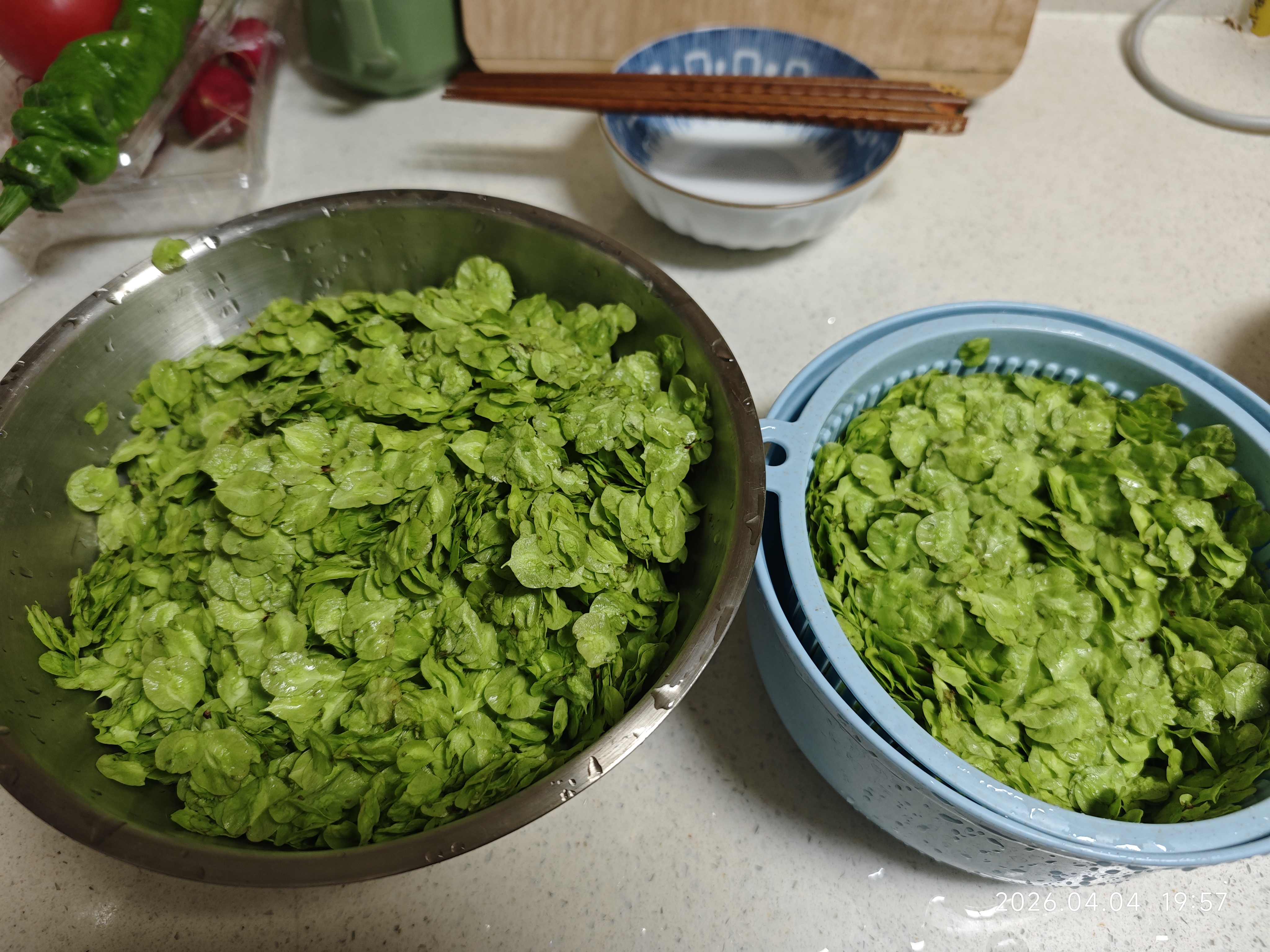 榆钱、槐花、苜蓿、曲曲菜、灰条(也叫灰灰菜、灰菜)、香椿、春笋、青豌豆
