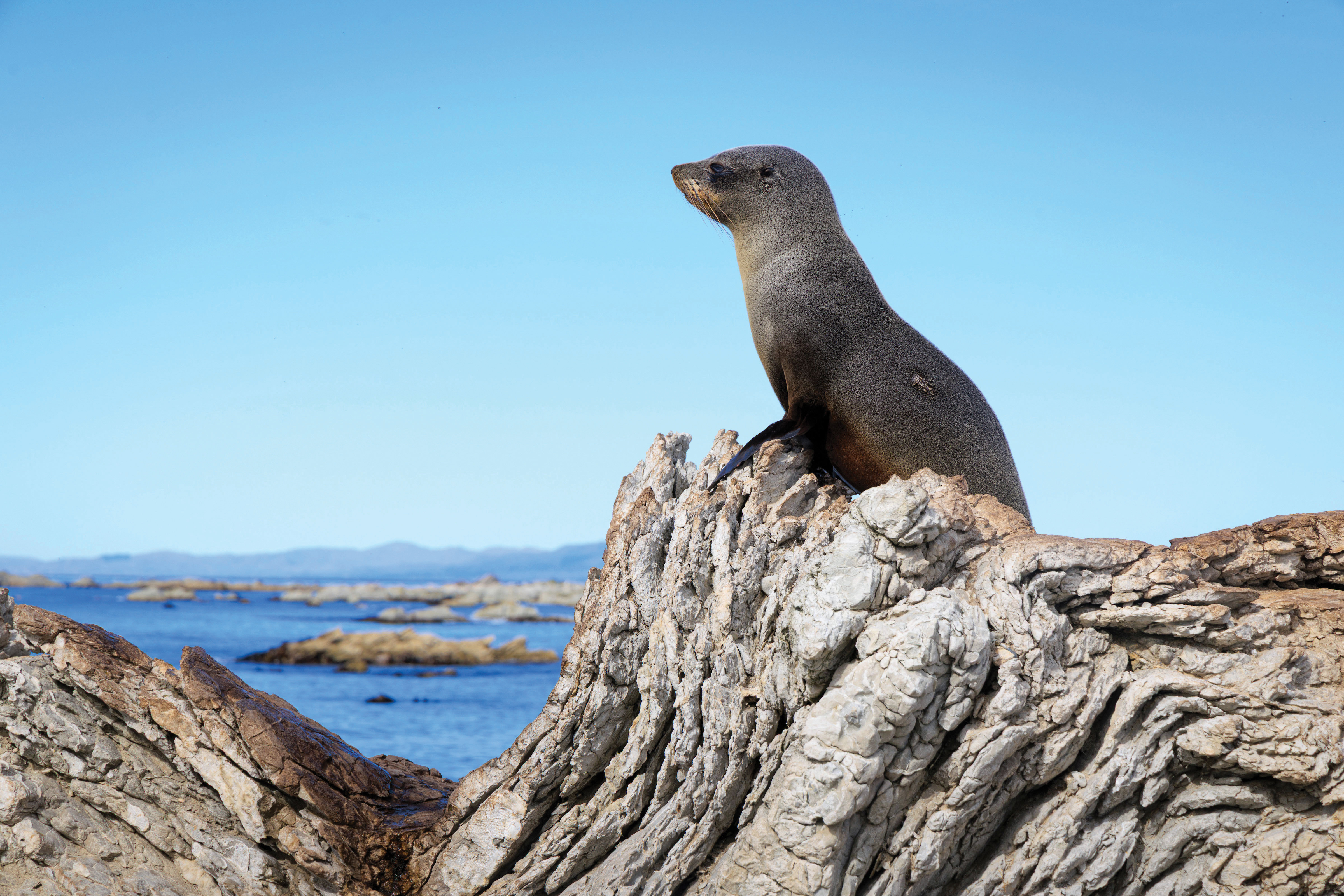 New Zealand is surrounded by the sea, so marine life is a big part of our natural world. Our waters are home to many different creatures, from tiny fish and sea stars to large sharks, seals, and whales. Because New Zealand has such a long coastline, there are many places where marine animals can live and thrive.