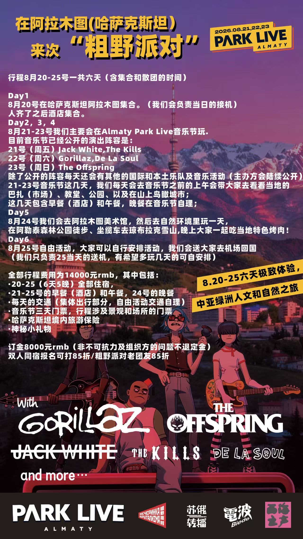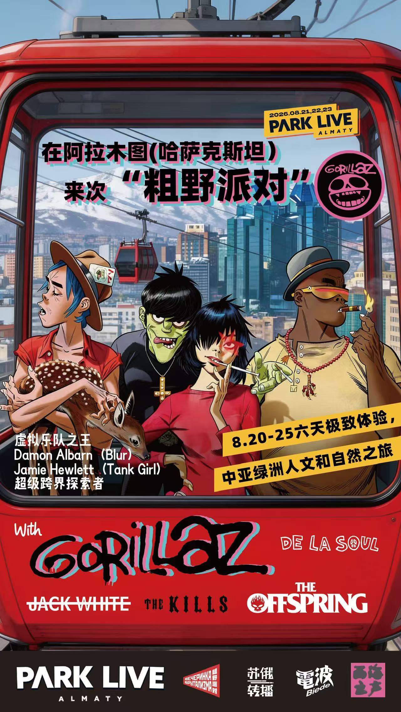 广而告之:粗野派对的哈萨克斯坦音乐节之旅正式招募了 和我们一起去阿拉木图看gorillaz吧(详细请看下面图片)