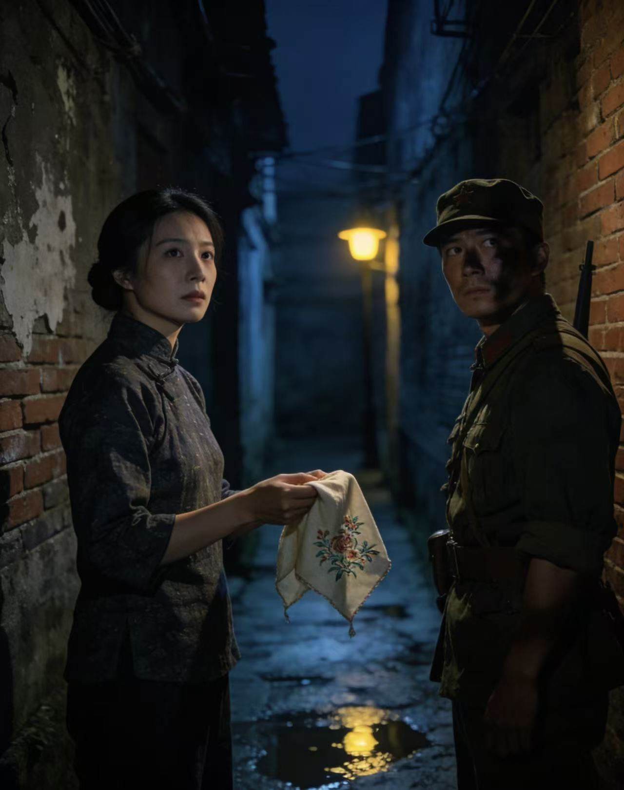 注:这是林秀娥在夜色中完成情报传递,以绣帕为桥,将生的希望送往前线。(本图片为AI生成)