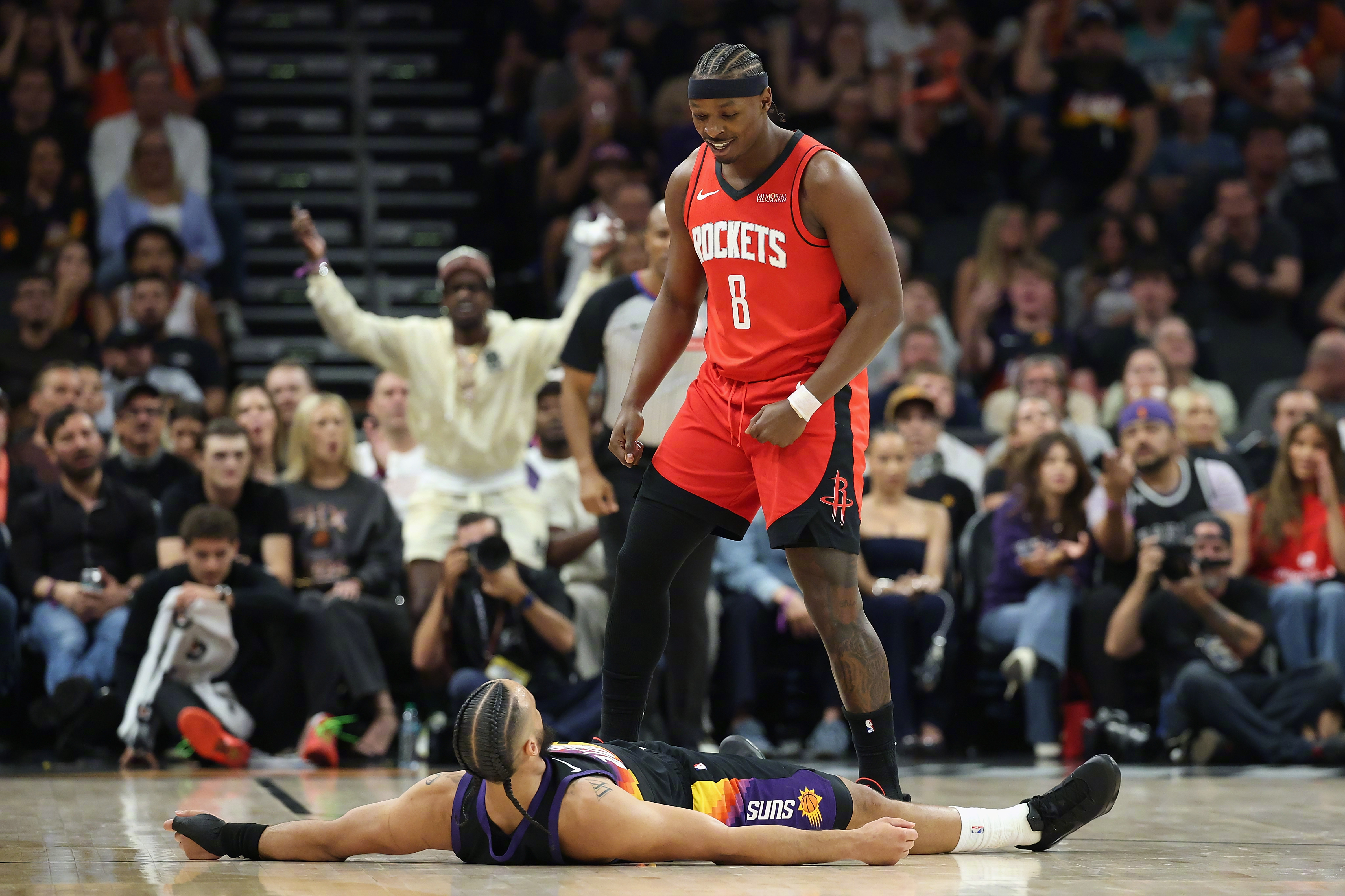 本期节目我们聚焦北京时间 4 月 8 日火箭客场对阵太阳的焦点战 —— 这是杰伦・格林首次身披太阳球衣迎战旧主的恩怨局,也是狄龙取消禁赛贴防 KD、太阳主场全力复仇的话题之战。最终火箭 119-105 拿下胜利,豪取本赛季最长七连胜,同时火箭完成赛季对太阳的横扫。