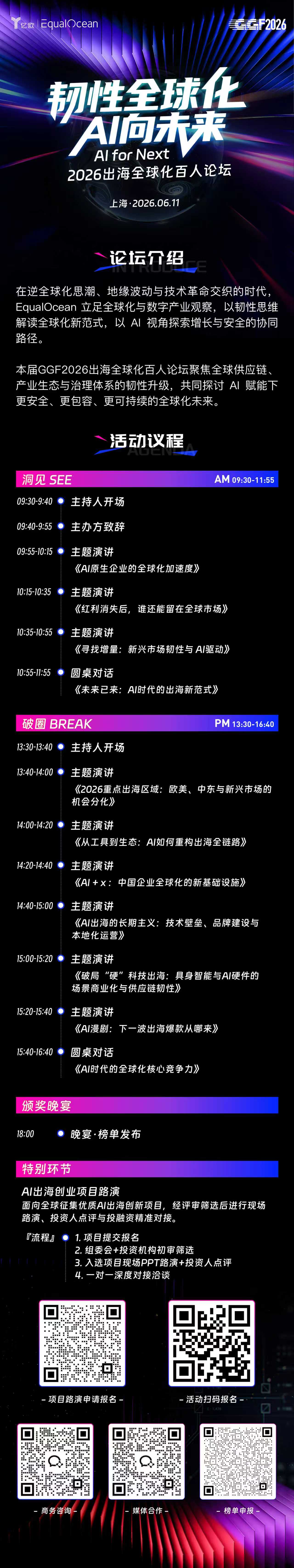 由出海全球化智库EqualOcean主办的2026出海全球化百人论坛(2026 GoGlobal Forum of 100,GGF2026)将于2026年6月11日在上海举行。