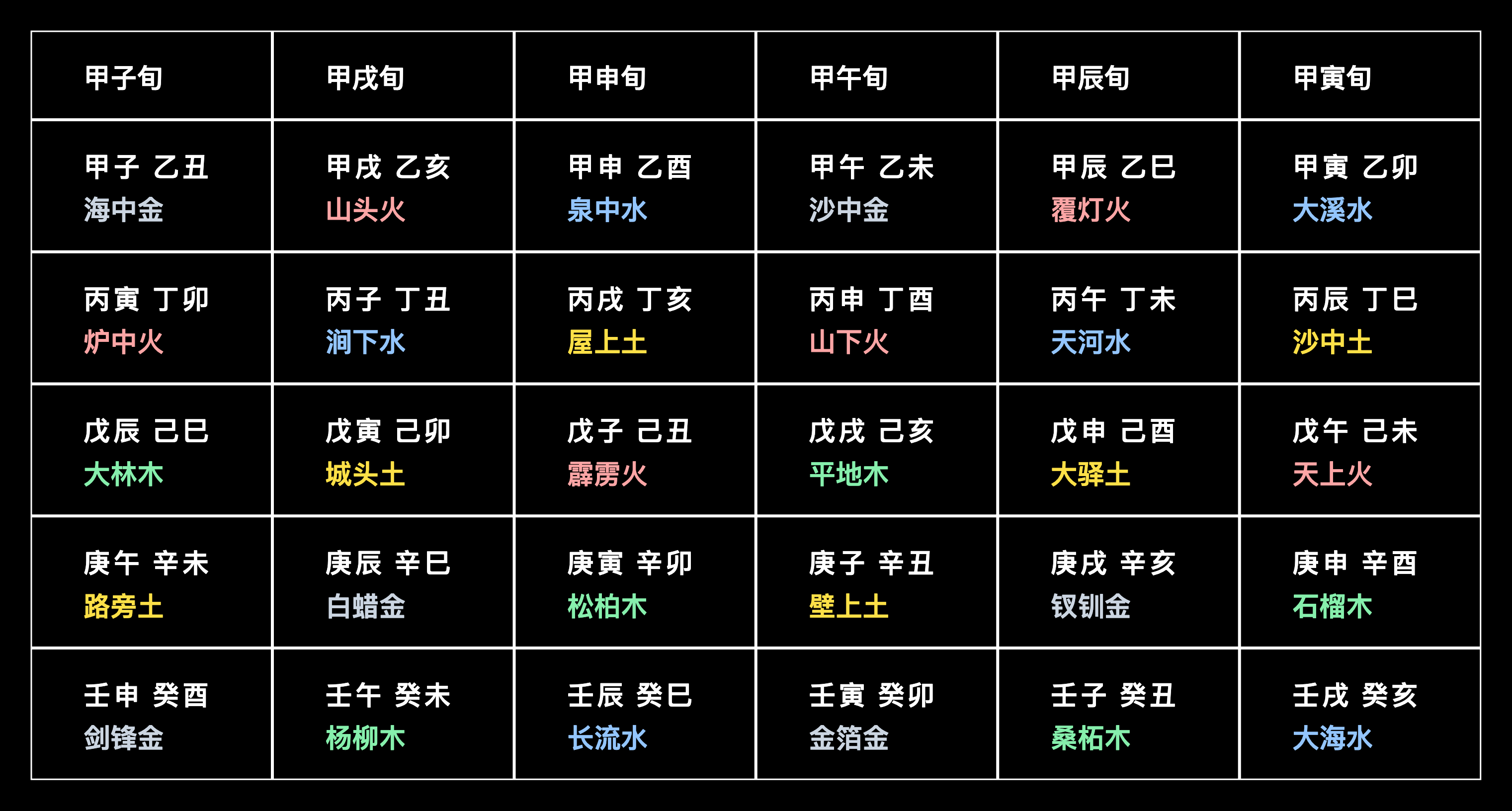 干支纳音同旬表