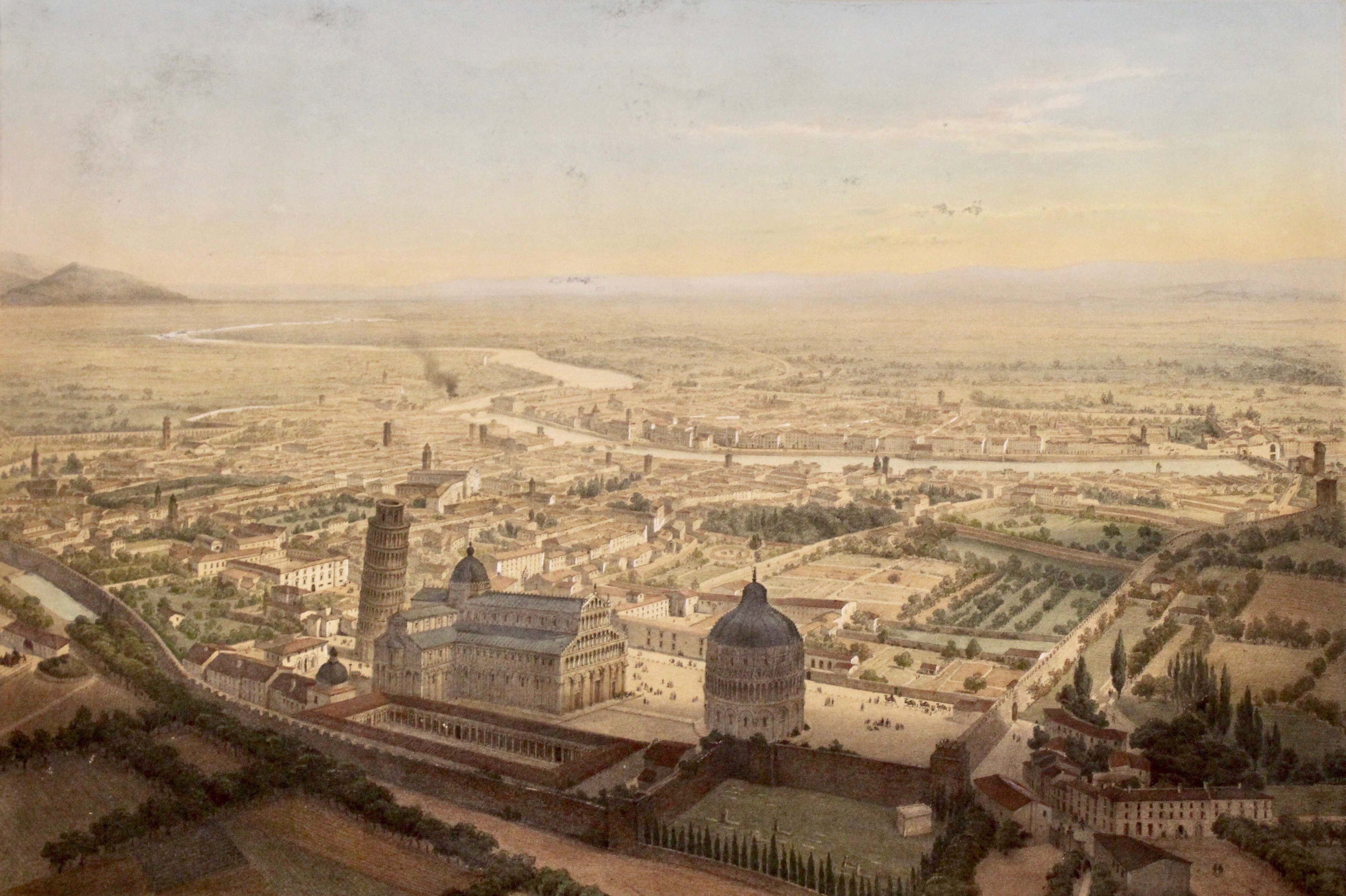 28 从圣墓方向描绘的比萨城市景色 by Alfred Guesdon(收录于《L'Italie a Vol d'Oiseau》1849年出版)