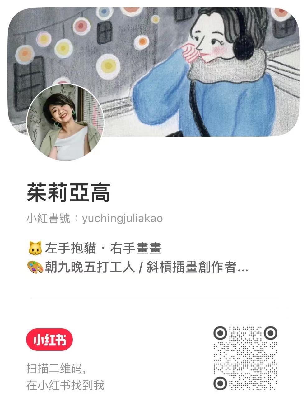 台湾人住在上海,白天在北欧家具厂做行销,下班后左手抱猫,右手画画,在往出版自己的第一本绘本迈进的路上。有兴趣欢迎小红书搜寻🔍茱莉亞高。