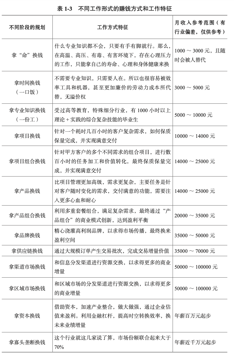 2、不同收入层级,对应的工作方式和能力要求各不相同