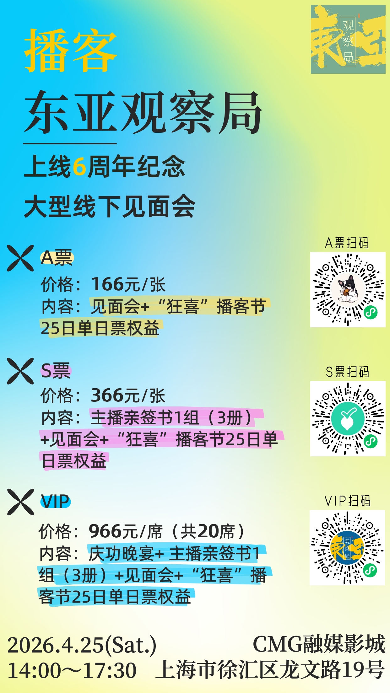16:15 【注意】东亚观察局6周年大型线下见面会