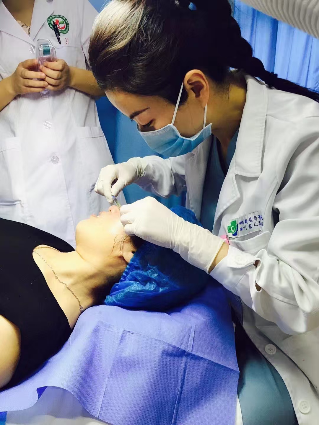 这张照片拍摄于罗瑶佳医生在卓正医疗工作期间,为热玛吉做教学分享。
