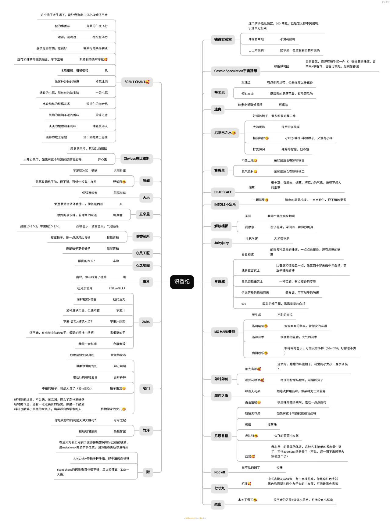 好奇闻到的前中后调的本味是什么,柑橘味分香柠檬、柠檬、苦橙、苦橙叶、西柚等还有柚子皮柚子叶柚子木头,在不知道本味的情况下无法分析成分,只能停留在想象